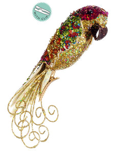 3"Hx7.5"L Glittered Parrot w/Clip Ornament Gold Mix (pack of 12)