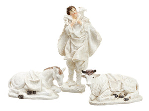 3"-7.5" Glittered Shepherd With Animals (3 ea/set) Glittered White (pack of 4)