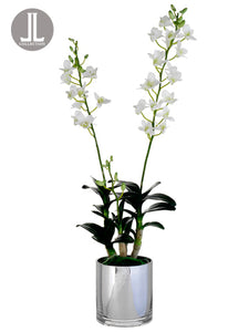 30" Dendrobium Orchid Plant in Glass Vase White (pack of 1)  - Regular price
