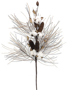 30" Faux Cotton Ball/Cone/ Long Needle Pine Spray Brown White (pack of 6)  - Regular price