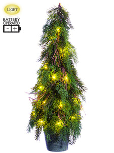 30" Battery Operated Cedar/ Pine Topiary Tree With 30 LED Light in Paper Mache Pot Two T (pack of 1)  - Regular price