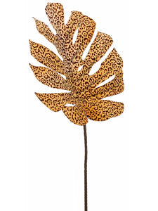 30" Leopard Print Split Philodendron Leaf Spray Yellow Brown (pack of 12)
