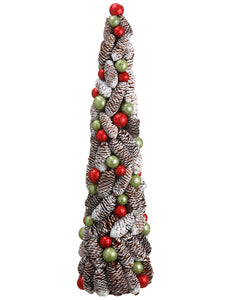 30" Glittered Pine Cone/Ball Cone Topiary Red Green (pack of 2)