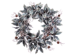 30" Glittered Magnolia Leaf with Pine Cone Wreath Green Iced (pack of 1)