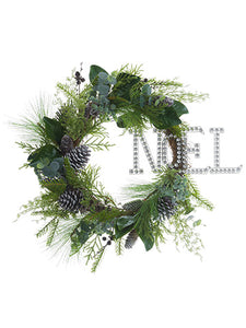 30" Mixed Pine Wreath With Rhinestone Noel Green Brown (pack of 1)