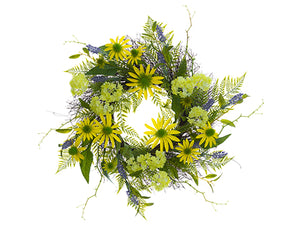 30" Snowball/Rudbeckia/ Lavender Wreath Green Yellow (pack of 2)