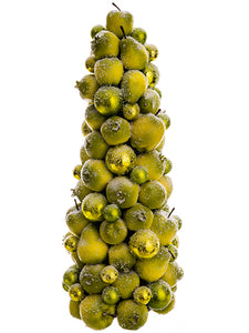 30" Snowed Mixed Fruits Cone Topiary Green Snow (pack of 1)
