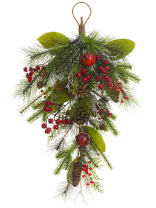 30" Pine Cone/Berry/Bell/ Pine Door Swag Red Green (pack of 2)