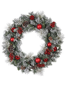 30" Snowed Pine With Cone/ Ball/Berry Wreath Red Snow (pack of 1)