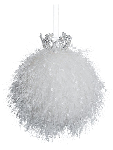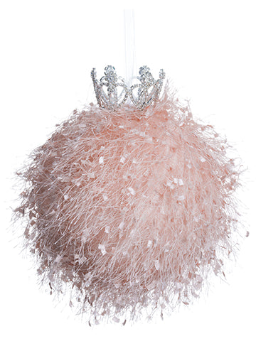 6" Furry Ball Ornament With Crown Pink (pack of 6)