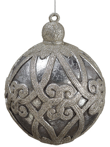 8" Glittered Ball Ornament With Cap