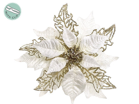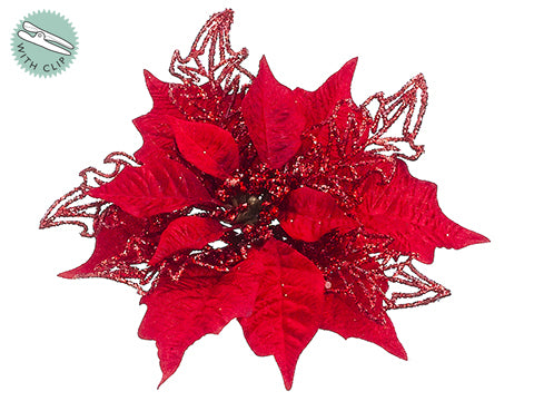 9.5" Glittered Velvet Poinsettia With Clip (pack of 24)