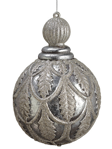 9" Glittered Ball Ornament With Cap (pack of 4)