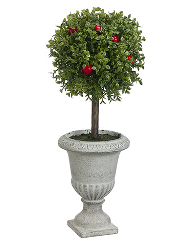 Ball Shaped Baby's Tears With Red Berry in Urn Green Red (pack of 4)