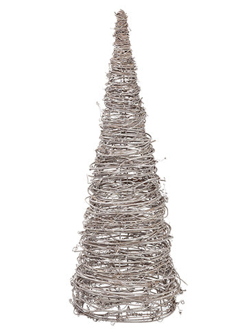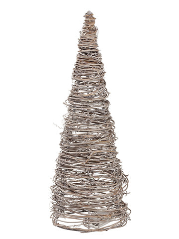 Battery Operated Twig Cone Topiary With Light Whitewashed
