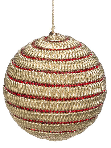 Cord/Rhinestone Ball Ornament Red Gold (pack of 6)