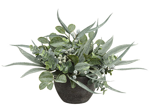 Eucalyptus Arrangement in Paper Mache Pot Green Gray