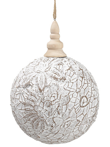 Flower Ball Ornament With Finial Top Beige