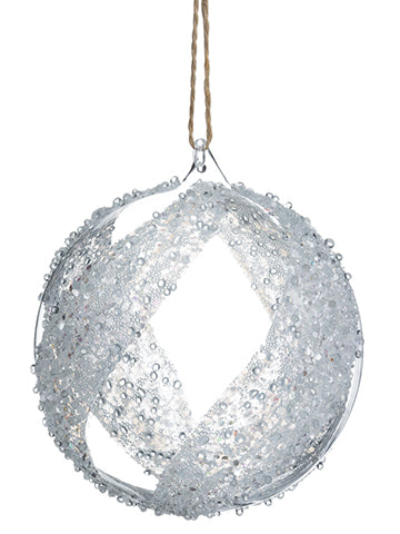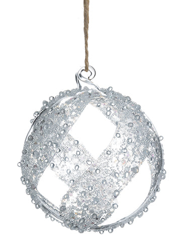 Glittered Glass Ball Ornament Clear Silver