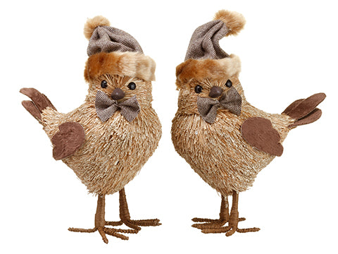 Glittered Sisal Bird (2 ea/set) Glittered Brown