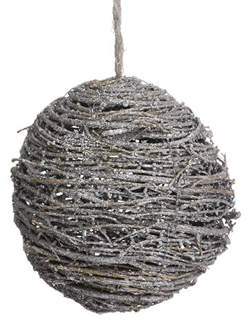 Glittered Twig Ball Ornament Brown Silver