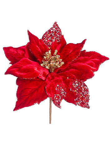 Glittered Velvet Poinsettia Pick Burgundy (pack of 12)