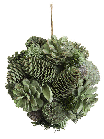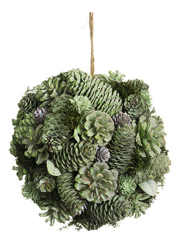 Iced Pine Cone Ball Ornament Green Ice (pack of 6)