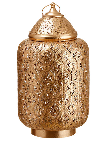 Metal Filigree Lantern with Glass Candleholder Gold