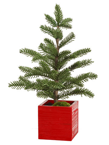 Mini Pine Tree in Red Wood Box Green