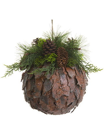 Moss Faux Birch Ball Ornament With Cone Green Brown