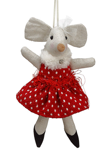 Mouse in Polka Dot Dress Ornament Red Cream (pack of 6)