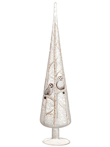Owl Glass Finial Table Top White Brown