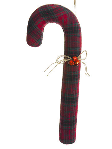 Plaid Candy Cane Ornament With Jute Trim Red Green