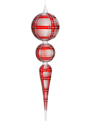Plaid Glass Finial Ornament Red White (pack of 6)