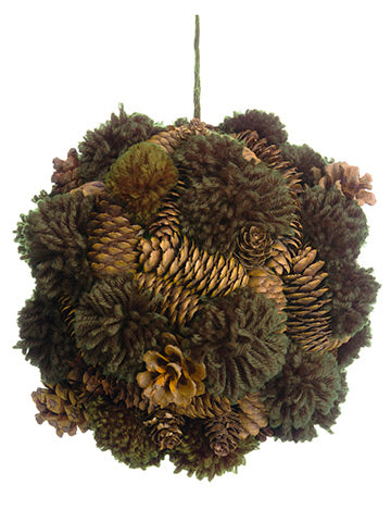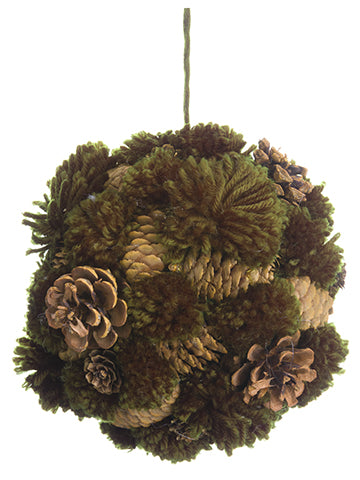 Pompom/Pine Cone Ball Ornament Green Brown (pack of 2)