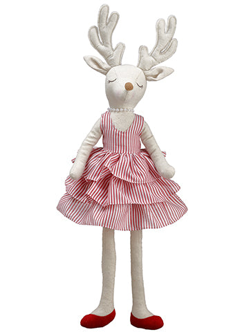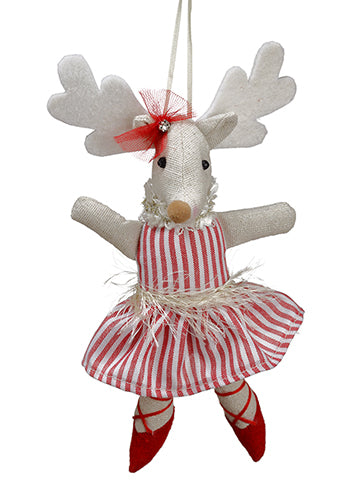 Reindeer in Stripe Dress Ornament Red Cream (pack of 6)
