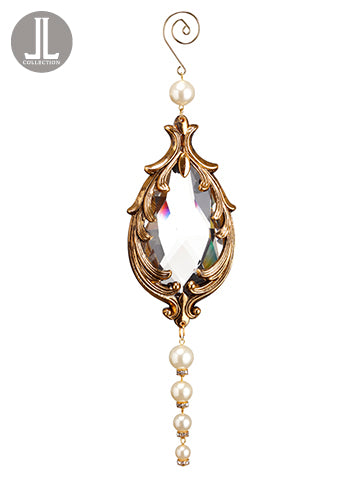Rhinestone/Pearl Drop Ornament Antique Gold
