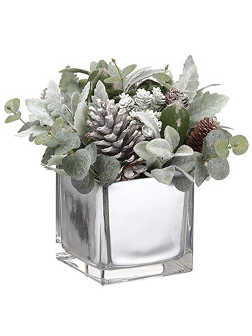 Sedum/Cactus/Lamb's Ear Arrangement in Glass Vase Two Tone Green (pack of 2)