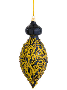 8.5" Florentine Glass Finial Ornament Black Gold (pack of 2)