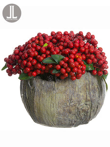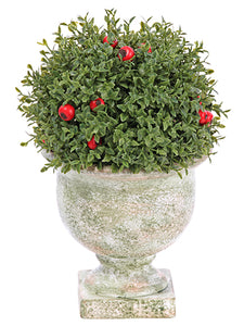 8.5" Tea Leaf/Berry in Paper Mache Urn Green Red (pack of 6)
