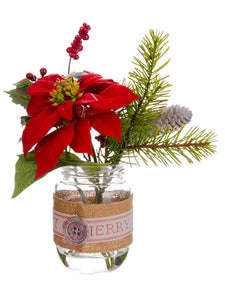 8.5" Poinsettia/Berry/Pine in Glass Vase Red Green (pack of 6)