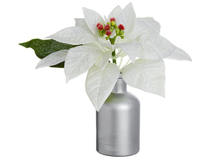 8.5" Glittered Pointessia Arrangement in Glass Vase White (pack of 12)