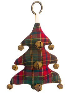 8" Plaid Tree Doorknob Hanger With Bells Red Green (pack of 6)