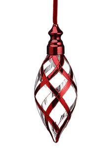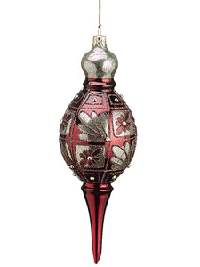 8" Glittered Tapestry Damask Glass Finial Ornament Burgundy Gold (pack of 2)