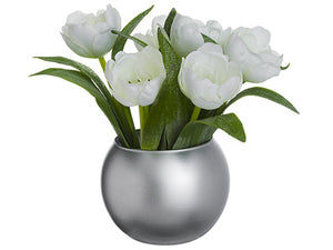 8" Glittered Tulip Arrangement in Glass Vase White (pack of 6)