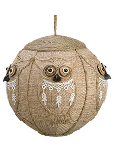 8" Burlap Lace Owl Ball Ornament w/Tassel Natural White (pack of 2)