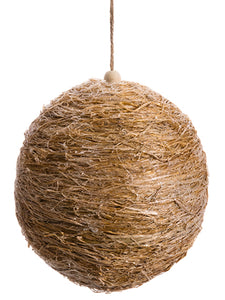 8" Glittered Straw Ball Ornament Brown Glittered (pack of 6)