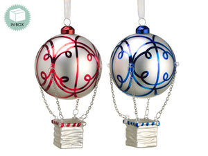 8" Assorted Glass Hot Balloon Ornament x2 in Box Red White (pack of 2)