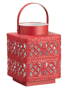 6.6"Hx5.3"Wx5.3"L Metal Lantern with Glass Candleholder Red White (pack of 8)