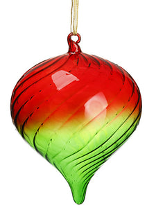 6.75" Striped Glass Onion Ornament With Gold Ribbon Hanger Red Green (pack of 6)